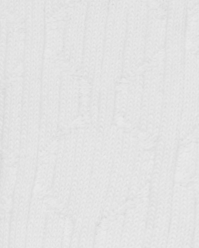 three pairs of white double needle cable knit cotton crew socks.
